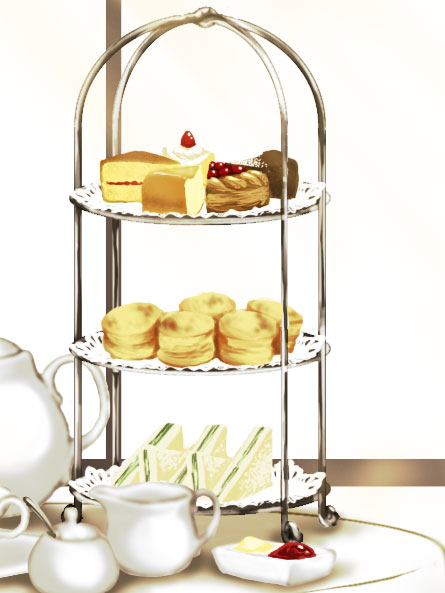 さらに言っとくと中段がスコーンで下段がきゅうりサンドです。