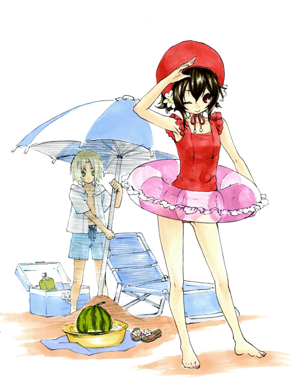 ちなみに上の絵の子達は小説の主人公達ですが、本編で海水浴シーンは……あり得ませんねえ。